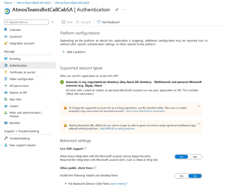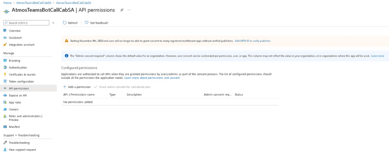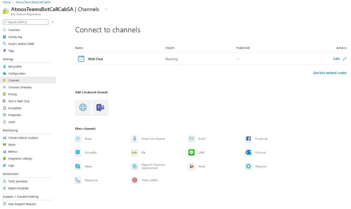 - Ensure that the CallCabinet Bot is successfully authorized by logging into your Azure Portal, locating the Bot.