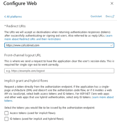 - 9.3.1. Enter “https://www.callcabinet.com” as the Redirect URI.