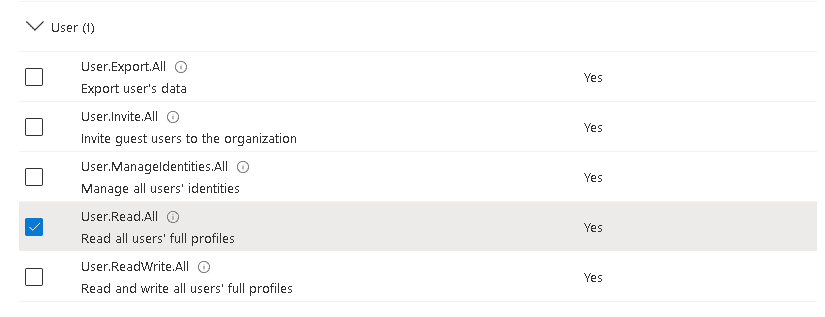 - 3.Click on “API Permissions” and make sure that the permissions are all set to “Granted”.