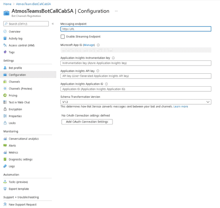 - Ensure that the “ApplicationId” matches the App ID assigned to your Bot.