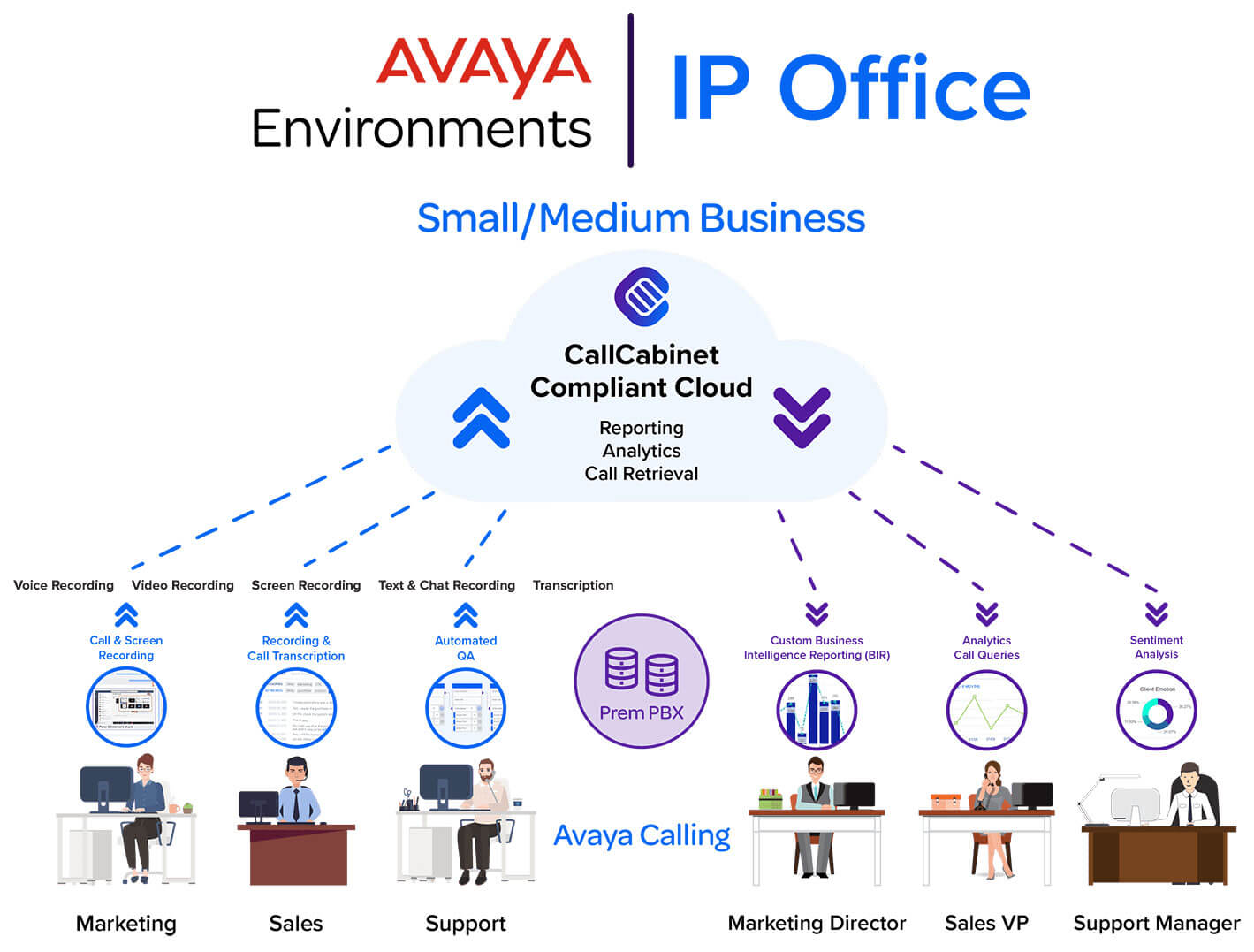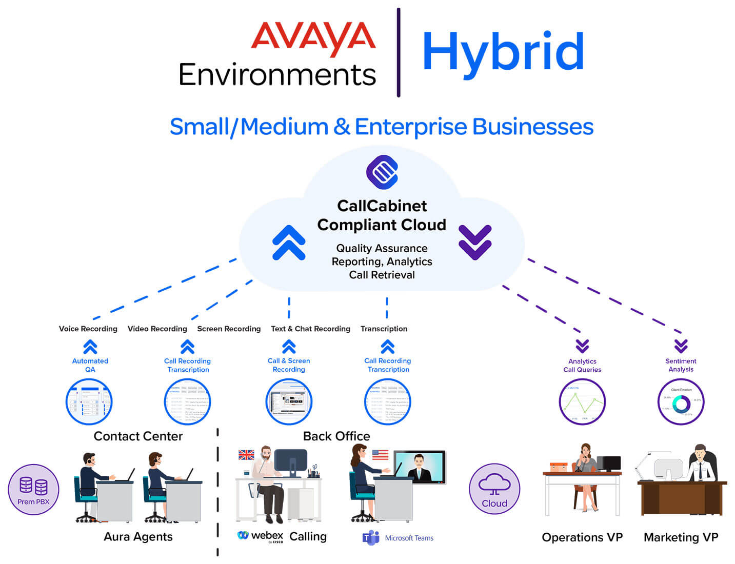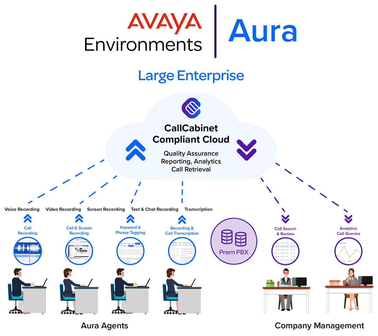 CallCabinet is an Avaya-certified solution that integrates seamlessly with both Avaya AURA and Avaya IP Office to bring award-winning compliant call recording, quality assurance, agent evaluation and analytics to enterprises of any scale.